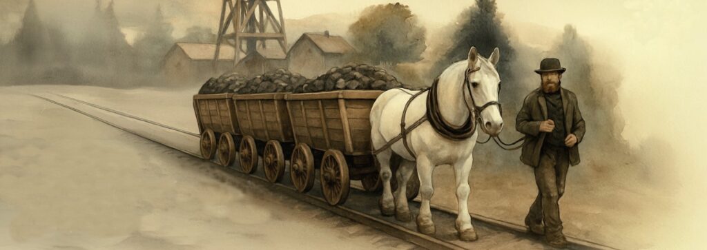 Elle fut tout d’abord à traction hippomobile (évocation par IA).