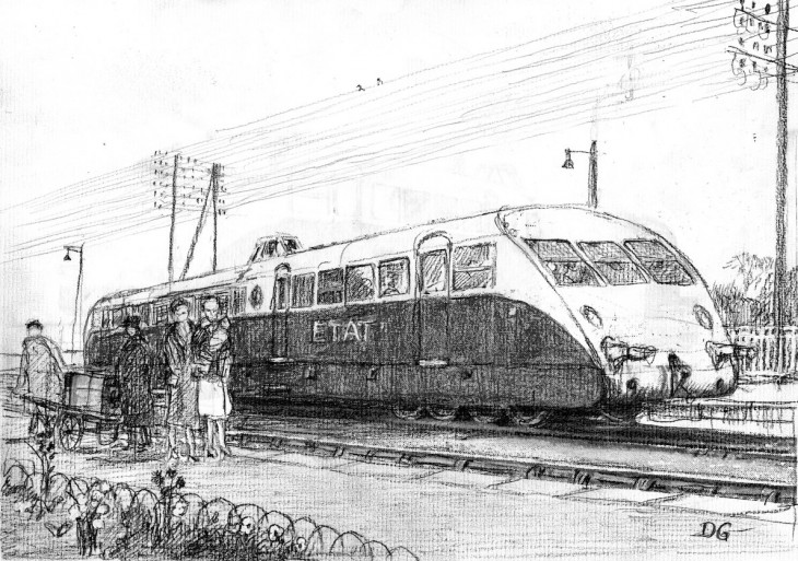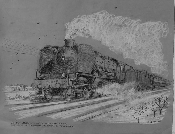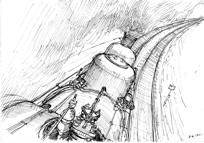 Séduit par ces dessins comme sans doute beaucoup d’autres forumistes(*), périodiquement je me régalais des nouvelles productions signées DG. Pendant tout ce temps, je me suis souvent demandé pourquoi cet artiste si prolixe était si peu connu de notre petit monde des peintres ferroviaires et pourquoi n’avait-il jamais participé au prix Schefer ?